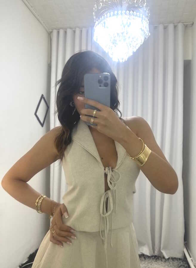 Gelince Haber VerBağlama detaylı natürel renk yelek, sade ve modern tasarımıyla gardırobunuza zarif bir dokunuş katar. İnce yapısı sayesinde mevsim geçişlerinde rahatlıkla kullanılabilir. Önde yer alan bağlama detayı şıklığı artırırken, natürel tonu farklı kombinlerle kolayca uyum sağlar.