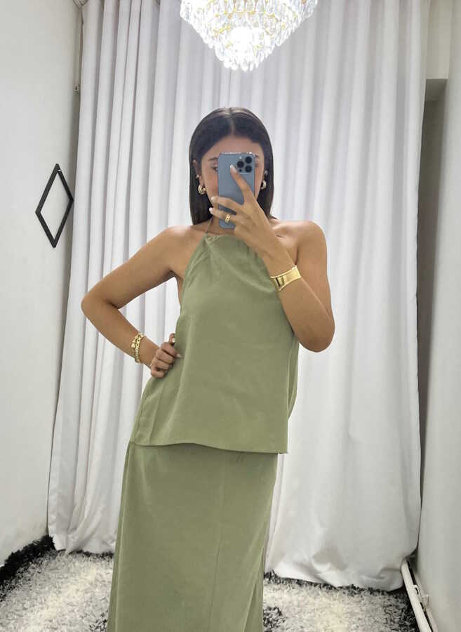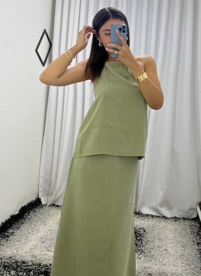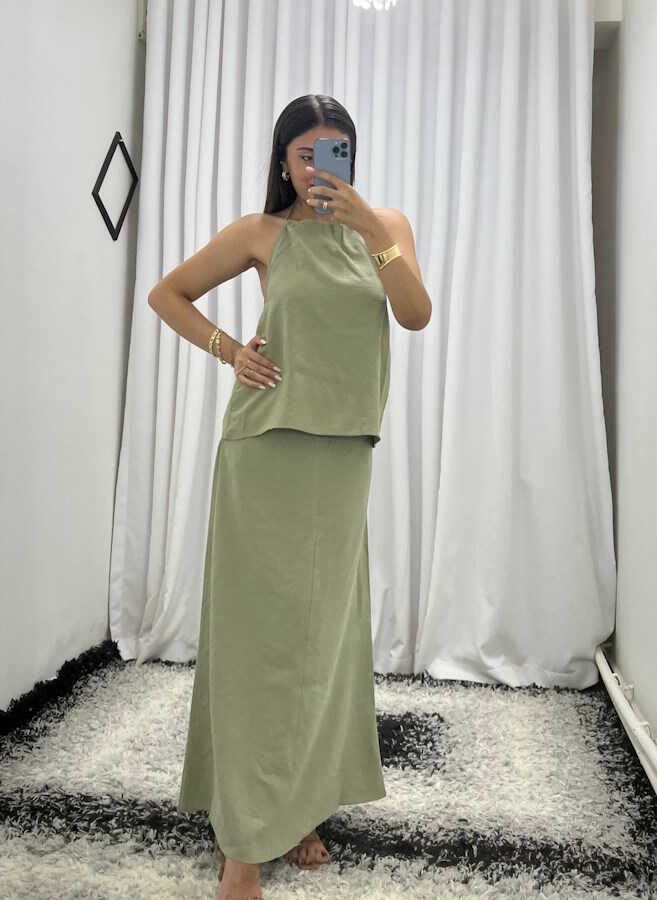Gelince Haber VerSırt detaylı haki keten bluz & etek takım, modern tasarımı ve doğal kumaşıyla yaz aylarının vazgeçilmez parçası. Nefes alan keten dokusu sayesinde gün boyu ferah tutar. Bluzun sırt kısmındaki şık detay, takıma zarif bir hava katarken, haki rengin doğal tonları farklı kombinlere kolayca uyum sağlar. Hem günlük kullanımda hem de özel davetlerde stil sahibi bir görünüm sunar.