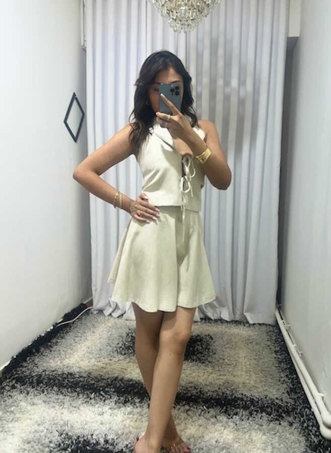 Gelince Haber VerVolanlı natürel mini etek, feminen ve zarif tasarımıyla yaz kombinlerinin öne çıkan parçası olur. Hafif ve rahat kumaşı sayesinde gün boyu konfor sağlar. Volan detayları eteğe hareket katarken, natürel tonu sayesinde hem günlük hem de özel davetlerde kolayca kombinlenebilir.
